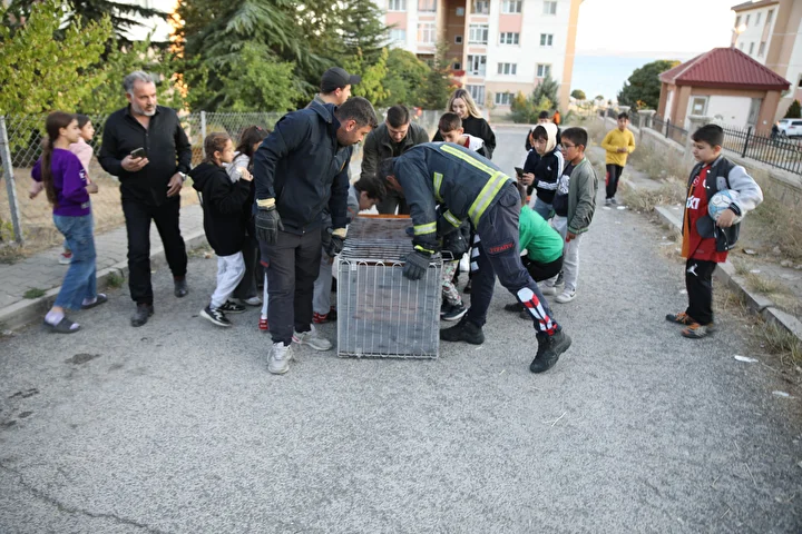 Su samurunu çıkartmakta zorlanan Çakır, Doğa Koruma ve Milli Parklar Erciş Şubesi ve itfaiye ekiplerine haber verdi.