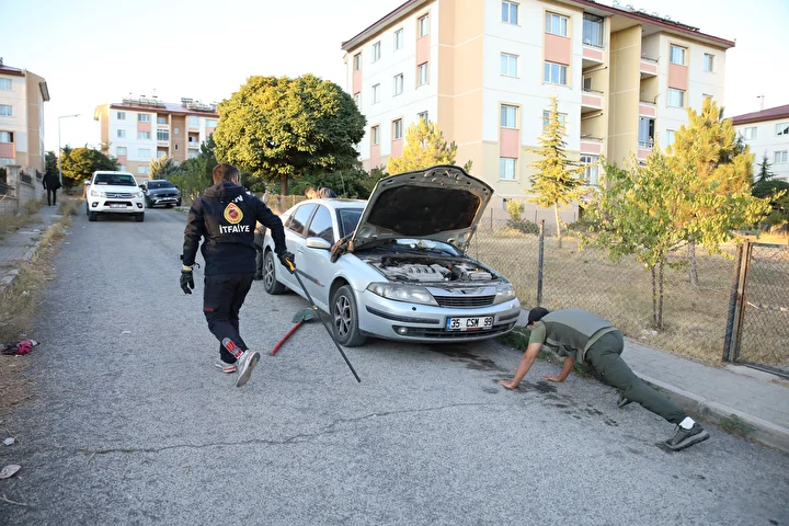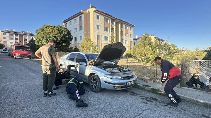 Köpeklerden kaçıp otomobilin kaputuna sığındı